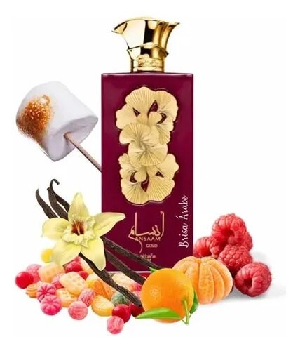 Ansaam Gold de Lattafa Pride es una fragancia de la familia olfativa Ámbar Floral para Mujeres. Las Notas de Salida son mandarina y pera; las Notas de Corazón son notas dulces, jazmín y rosa; las Notas de Fondo son vainilla, almizcle y frambuesa. Este perfume presenta una mezcla única de especias clásicas y flores superpuestas a la base prominente de vainilla dulce y oud mientras que también te ofrece las notas clásicas de rosa, jazmín y bergamota.